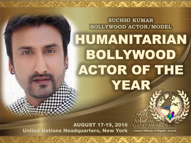 "Mr. Kumar is a hardworking person and he takes his craft seriously, yet he put charity in a special spot in his heart. That is why we, at the honoree committee are very excited to honor Mr. Kumar with Humanitarian Bollywood Actor of the Year!", exclaimed Princess Maria Amor, founder and president of We Care for Humanity and creator of the G.O.D. Awards. In addition she said, " He is a great example of performing artists who use their talents and skills for humanitarianism, we should have more artists like him in the Hollywood and Bollywood Industry". Suchhi will be honored at the 4th Global Officials of Dignity Awards(G.O.D. Awards) on August 17-19, 2016 at the United Nations Headquarters, New York. Both flagship events are organized by We Care for Humanity and its philanthropic partners: SREI Foundation, J & B Medical Company, HWPL and China-US Business Association. About Suchhi Kumar: Suchhi Kumar, a talented and popular model and Indian actor, said "My life is my way, my way is my destiny and my destiny is my life." He follows an excellent motto, which is known as "my life, my way and my destiny." An energetic face with an engraved body, Suchhi kumar easily took over the stunning modelling field and this was the surprising turn of Bollywood" Mumbai. First thing, one can know about Suchhi kumar, is God comes first in his life. He is one of the sincere human being, one could ever meet and know. He is from Varanasi, UP and started his career as an excellent model and winning the famous "Best Physique" award in North India. After that, he shifted to Delhi where he consolidated his modeling career as a brand ambassador of many prestigious brands, including Kumar-shirts, Levi's, Leo shoes, etc. He is an adoring as well as creative person, always using his mind in order to make any research and develop fresh concepts for his exclusive projects. Suchhi comes from the family with excellent values which makes him who he is today. He has always enjoyed acting since he was a small child and he is fortunate that now he earn his living by doing what he love the most, known as Acting, Acting, Acting! He got an excellent opportunity to assist some of the highly experienced and brilliant directors of Bollywood industry, accordingly learned lots of useful things from them. Along with this, he also got a fantastic chance to travel all around the world where he truly learned about various cultures and met awesome personalities from the international film industry. He is fond of the martial arts and was blessed to obtain training from experienced and talented masters in Japan, which is being very useful today because he want to establish himself as an action oriented actor. While speaking about his new challenge, it is implementing his own production company SILVER DOLLAR PRODUCTION which he is recently launched. His main aim is to enlarge his activities as well as to provide best services in everything which related to event and film production. His company also has a branch in Mauritius and Africa as he wants to deal on a global level. "My journey is lead by God, and he's putting people on my path, to guide my life and I always wish the best for everyone, and encourage them to stay prayerful", said by Suchhi Kumar. In addition, he always expresses his deepest gratitude to all his fans for their support, blessings and love. End chapter 38